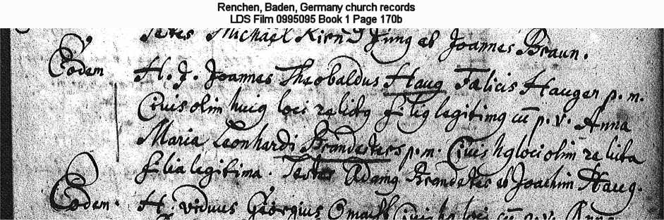 Renchen, Baden, Germany church records LDS Film 0995095 Book 1 Page 170b