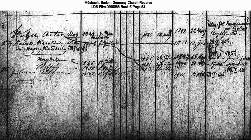 Mösbach, Baden, Germany Church Records LDS Film 0995083 Book 5 Page 54