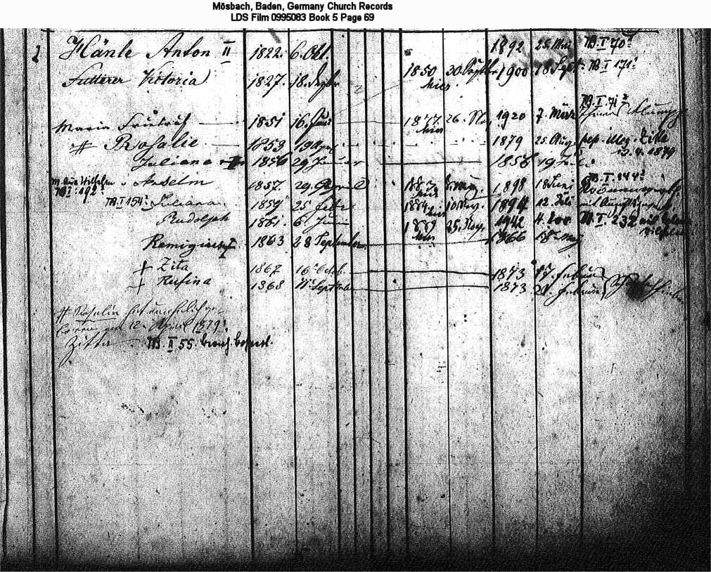 Mösbach, Baden, Germany Church Records LDS Film 0995083 Book 5 Page 69