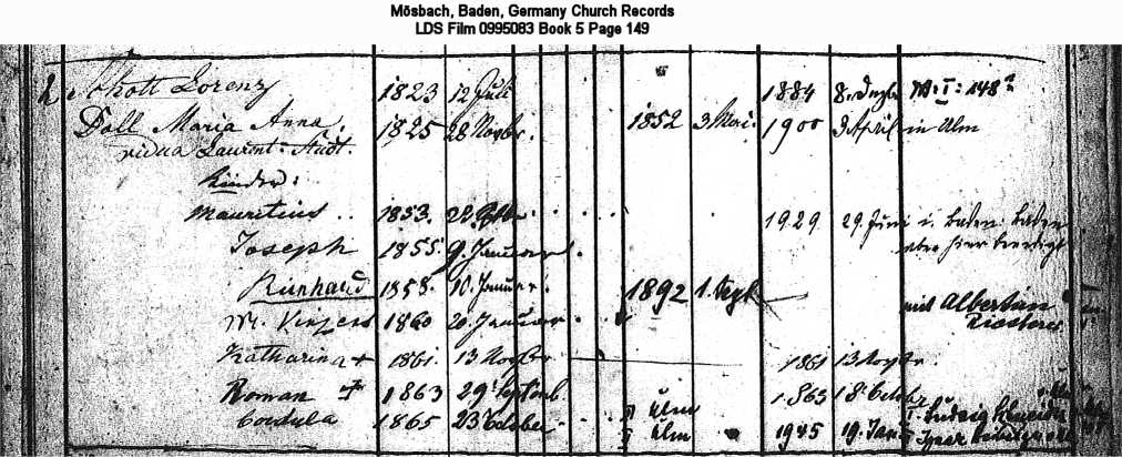 Mösbach, Baden, Germany Church Records LDS Film 0995083 Book 5 Page 149