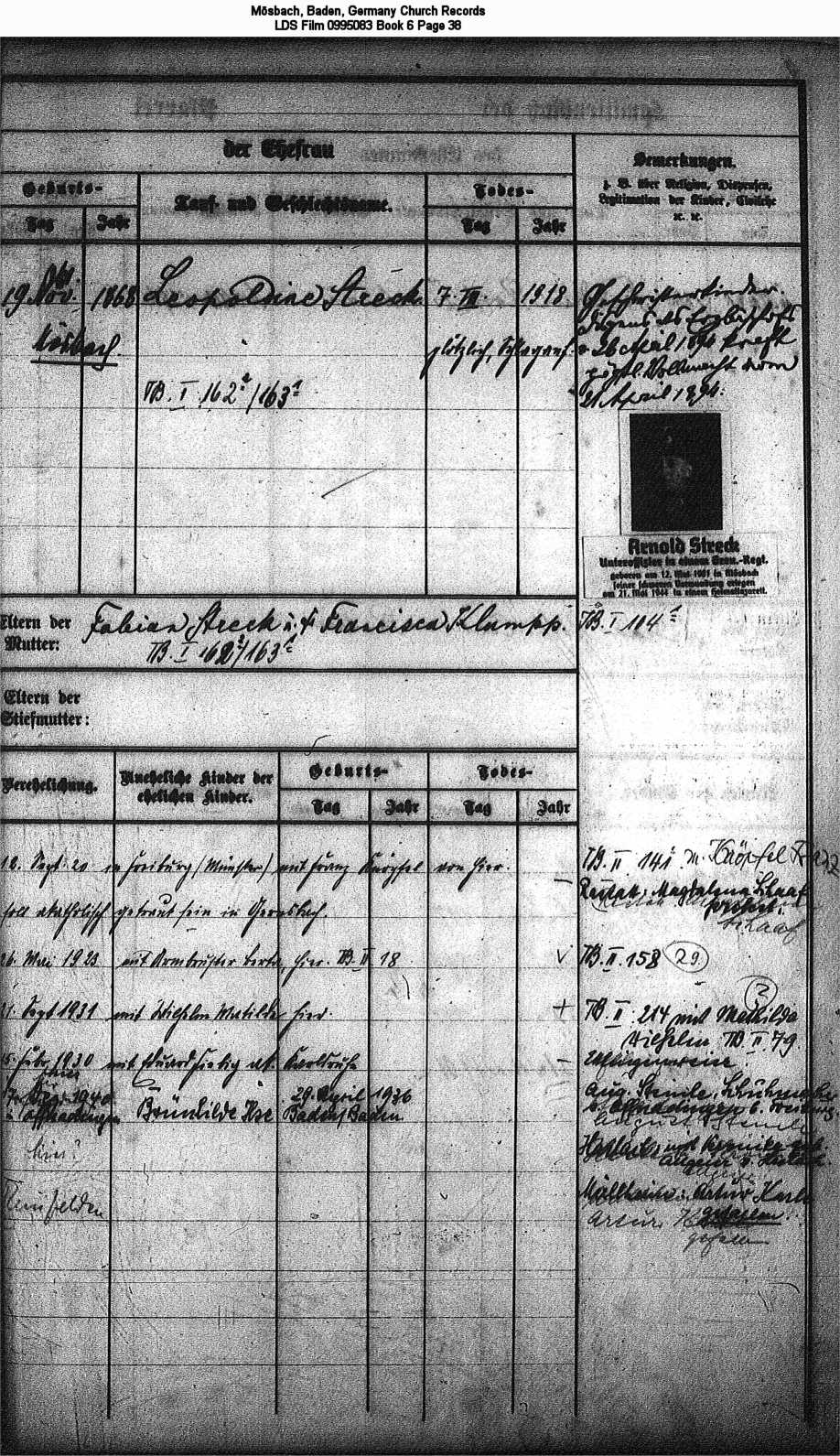 | Church Family Record 2 page 2 Mösbach, Baden, Germany Church Records LDS Film 0995083 Book 6 Page 38 |
