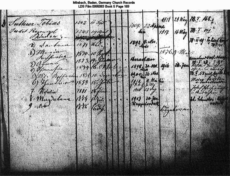 | Church Family Record Mösbach, Baden, Germany Church Records LDS Film 0995083 Book 5 Page 169 |