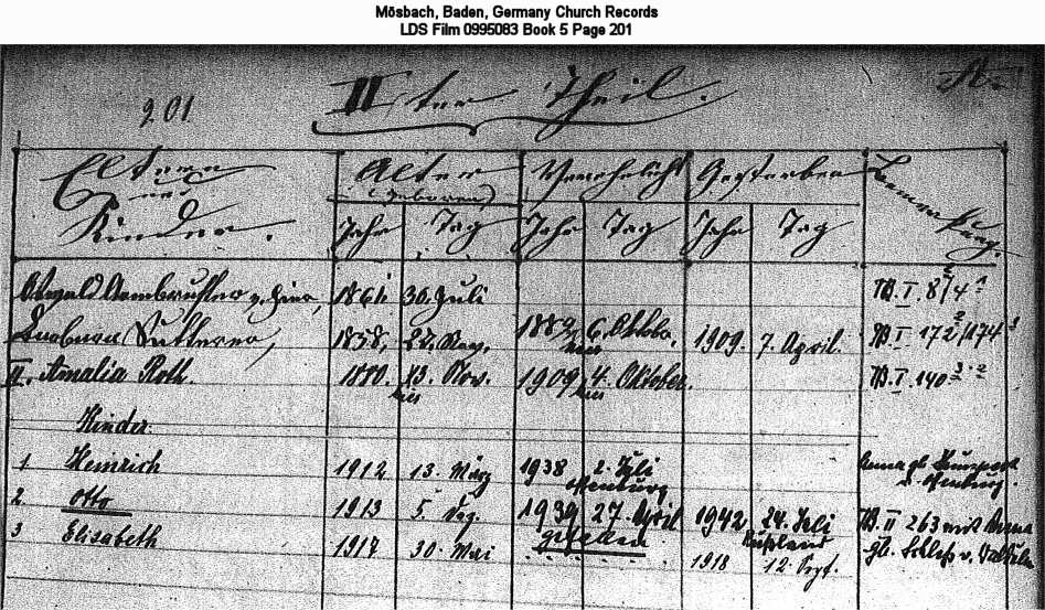 Mösbach, Baden, Germany Church Records LDS Film 0995083 Book 5 Page 201
