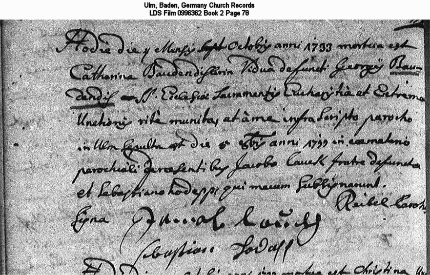 Ulm, Baden, Germany Church Records LDS Film 0996362 Book 2 Page 78