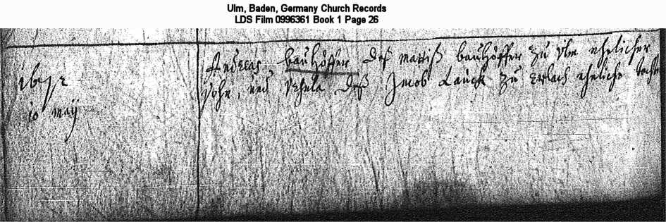Ulm, Baden, Germany Church Records LDS Film 0996361 Book 1 Page 26