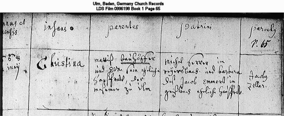 Ulm, Baden, Germany Church Records LDS Film 0996198 Book 1 Page 65