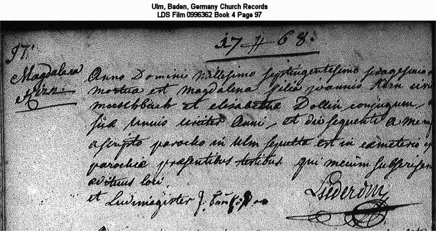 Ulm, Baden, Germany Church Records LDS Film 0996362 Book 4 Page 97