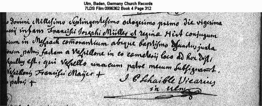 Ulm, Baden, Germany Church Records 7LDS Film 0996362 Book 4 Page 312