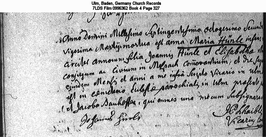 Ulm, Baden, Germany Church Records 7LDS Film 0996362 Book 4 Page 327