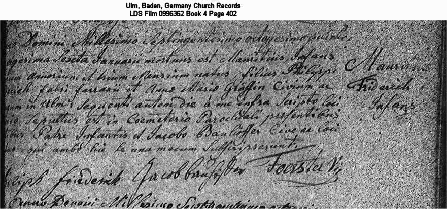 Ulm, Baden, Germany Church Records LDS Film 0996362 Book 4 Page 402