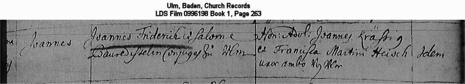 Ulm, Baden, Church Records LDS Film 0996198 Book 1, Page 263