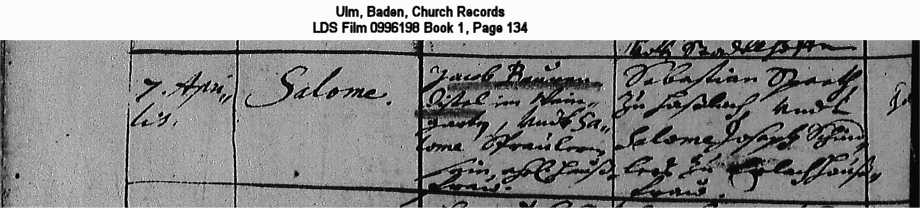 Ulm, Baden, Church Records LDS Film 0996198 Book 1, Page 134