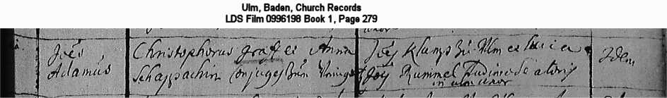 | Birth Record Ulm, Baden, Church Records LDS Film 0996198 Book 1, Page 279 |
