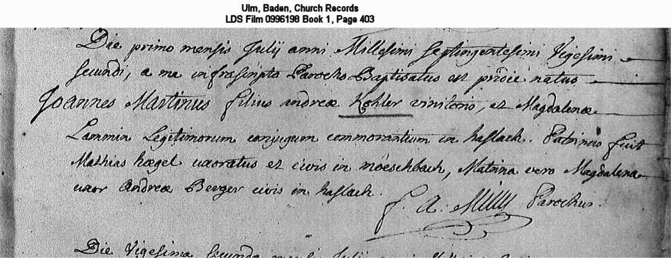Ulm, Baden, Church Records LDS Film 0996198 Book 1, Page 403