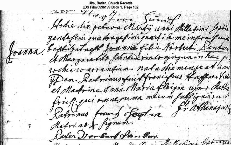 Ulm, Baden, Church Records LDS Film 0996199 Book 1, Page 162