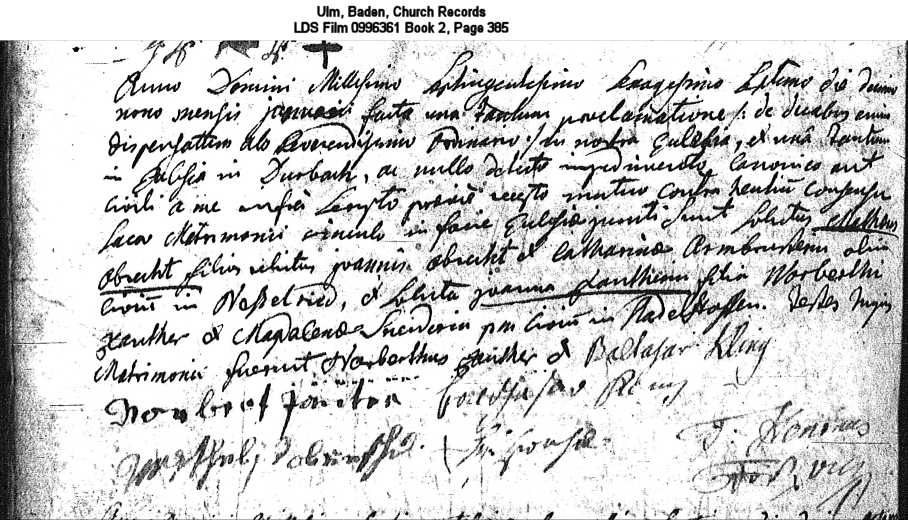Ulm, Baden, Church Records LDS Film 0996361 Book 2, Page 385