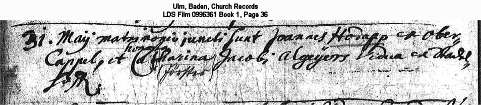 Ulm, Baden, Church Records LDS Film 0996361 Book 1, Page 36