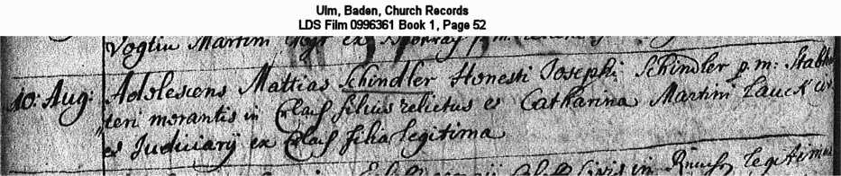 Ulm, Baden, Church Records LDS Film 0996361 Book 1, Page 52