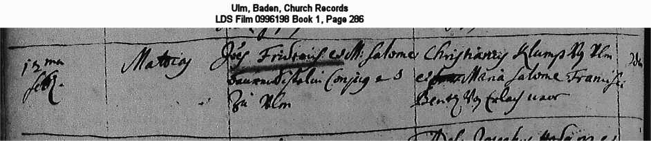 Ulm, Baden, Church Records LDS Film 0996198 Book 1, Page 286