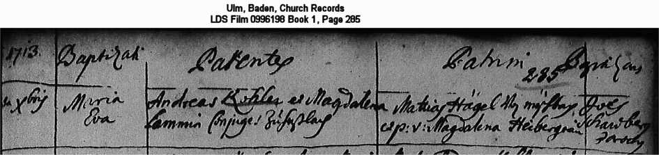 Ulm, Baden, Church Records LDS Film 0996198 Book 1, Page 285