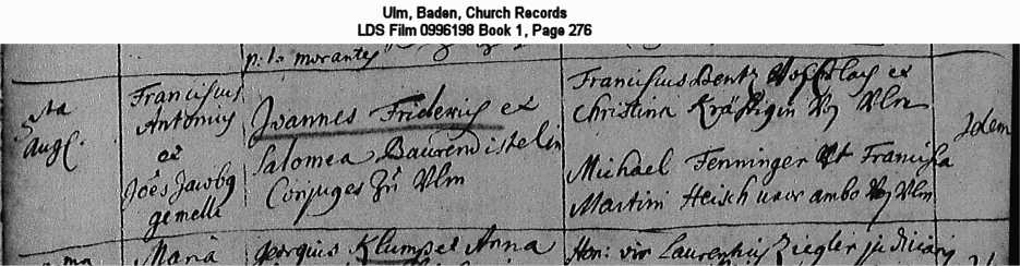 Ulm, Baden, Church Records LDS Film 0996198 Book 1, Page 276