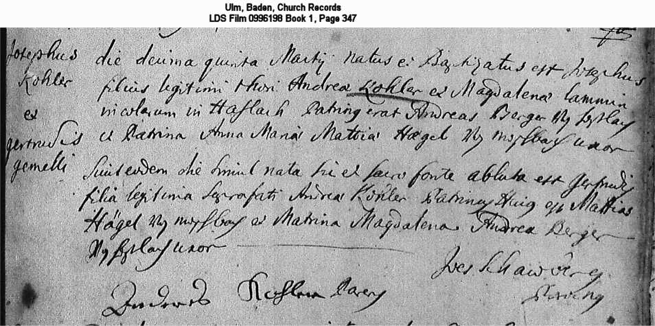 Ulm, Baden, Church Records LDS Film 0996198 Book 1, Page 347