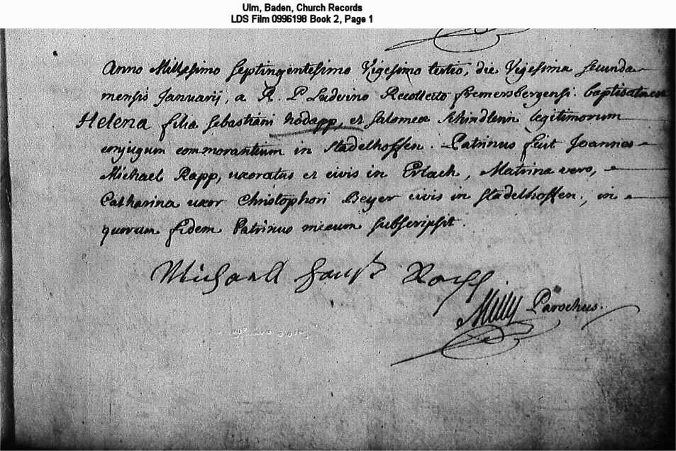 Ulm, Baden, Church Records LDS Film 0996198 Book 2, Page 1