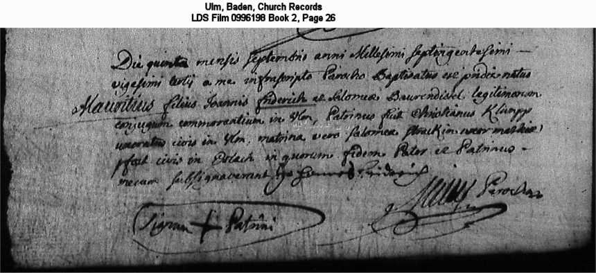 Ulm, Baden, Church Records LDS Film 0996198 Book 2, Page 26