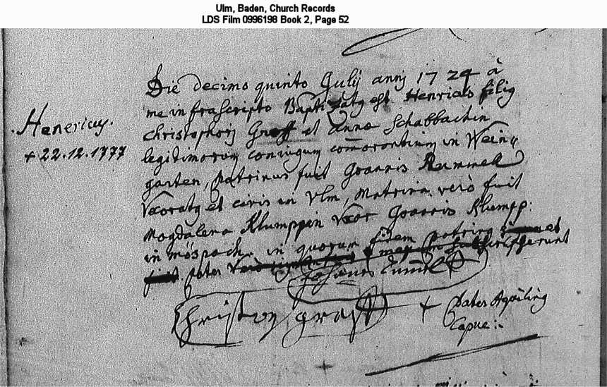 Ulm, Baden, Church Records LDS Film 0996198 Book 2, Page 52