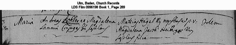 Ulm, Baden, Church Records LDS Film 0996198 Book 1, Page 289