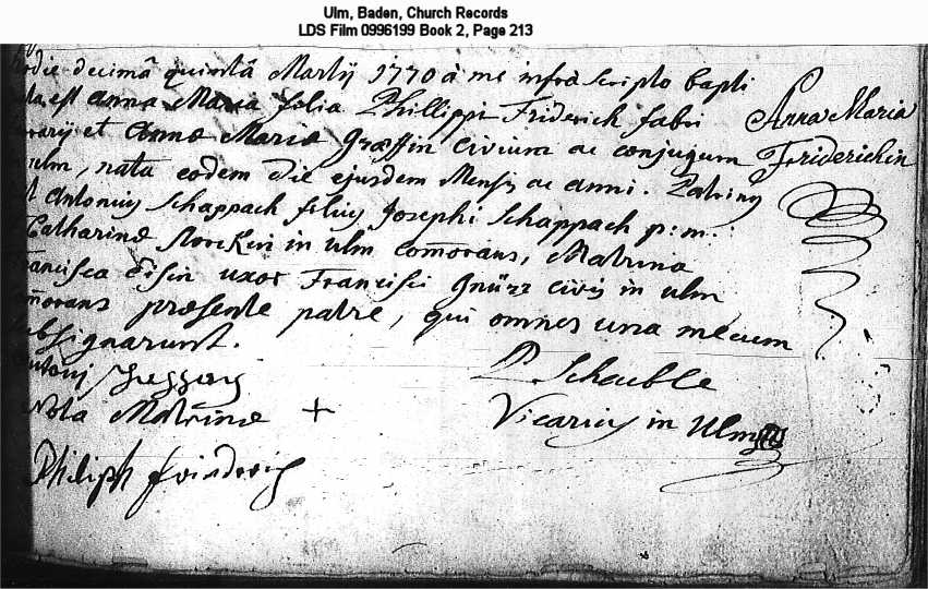 Ulm, Baden, Church Records LDS Film 0996199 Book 2, Page 213