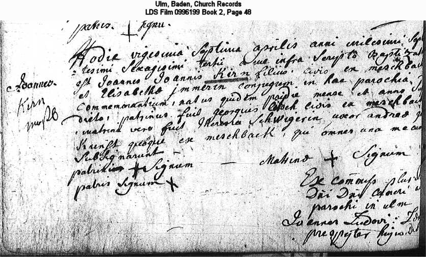 Ulm, Baden, Church Records LDS Film 0996199 Book 2, Page 48