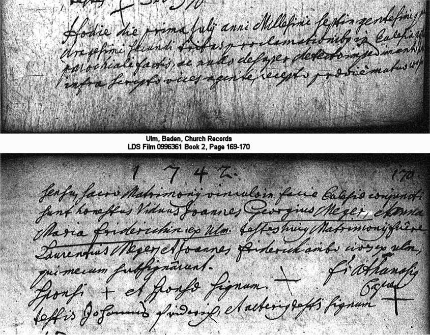 Ulm, Baden, Church Records LDS Film 0996361 Book 2, Page 169-170