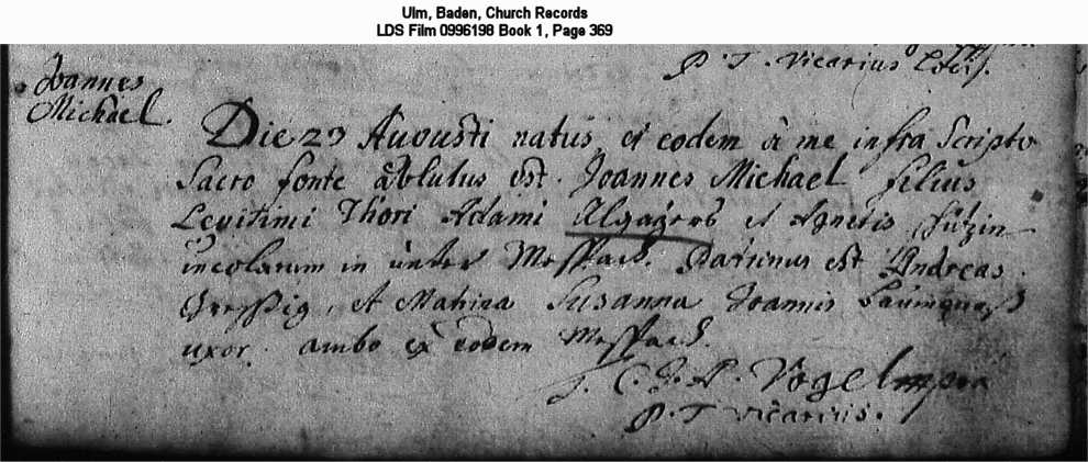 Ulm, Baden, Church Records LDS Film 0996198 Book 1, Page 369