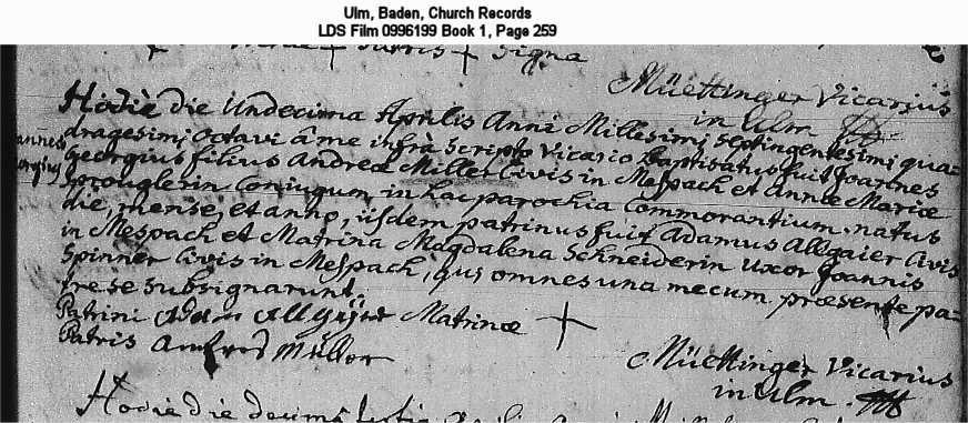Ulm, Baden, Church Records LDS Film 0996199 Book 1, Page 259