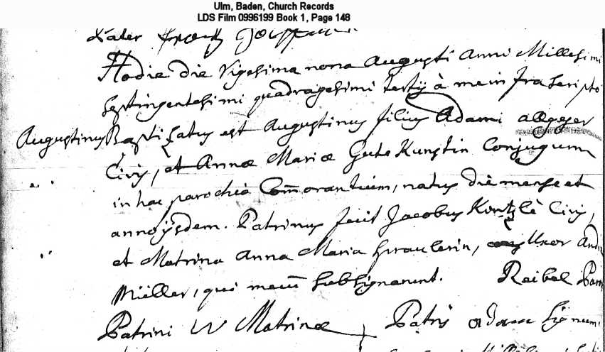 Ulm, Baden, Church Records LDS Film 0996199 Book 1, Page 148
