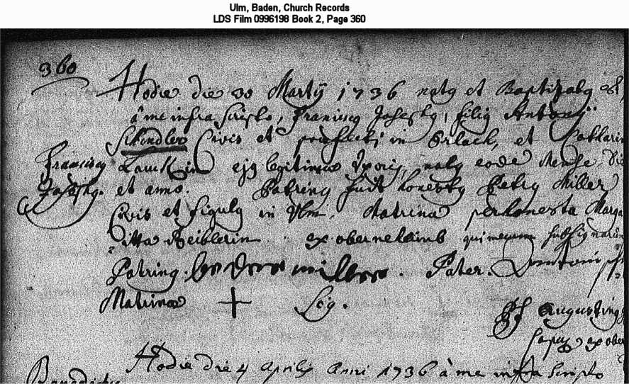 Ulm, Baden, Church Records LDS Film 0996198 Book 2, Page 360