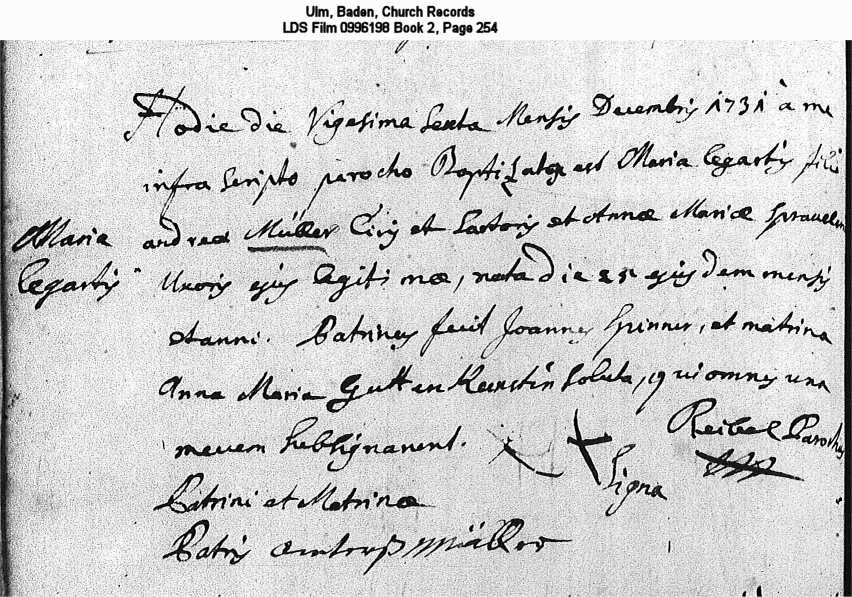 Ulm, Baden, Church Records LDS Film 0996198 Book 2, Page 254