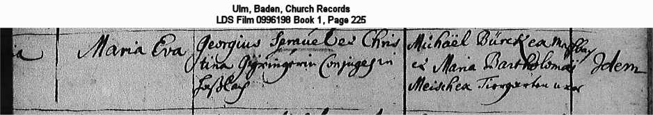 Ulm, Baden, Church Records LDS Film 0996198 Book 1, Page 225