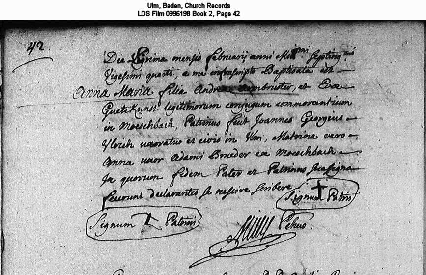 Ulm, Baden, Church Records LDS Film 0996198 Book 2, Page 42