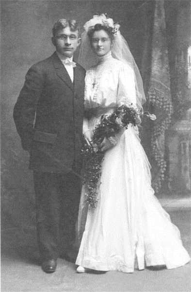 | Wedding Photo with Attendants Theodore and Mary Ann Vorwerk and attendants Anne Panther, sister of the bride and Lawrence Vorwerk, brother of the groom. |
