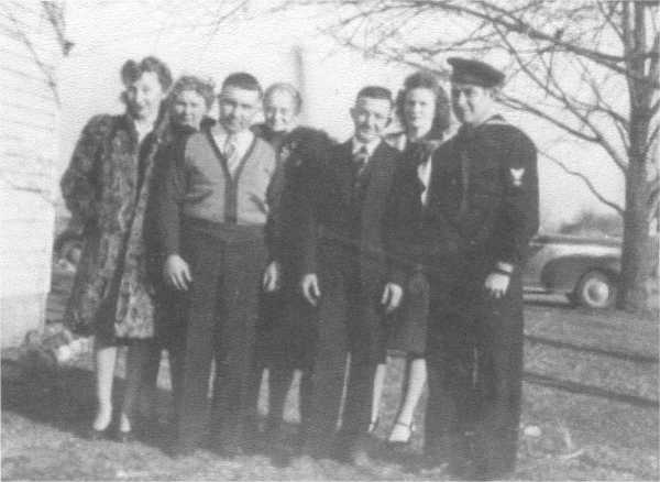 | Family c 1940 Celestine, Mary Elizabeth, Tony, Mary, Art, Loyola and Leondard when he was home on leave from the Navy. |