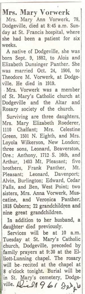 | Theodore Vorwerk House Theodore and Mary Panther Vorwerk's House in Dodgeville. This was the site of many Panther reunions over the years. |