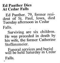 | Aloysius and Elizabeth Panther and Children F: Veronica, Mary, Anna M: George, Alvin Edward (Middle), Joseph, Elizabeth B: Leonard, Benedict, Frank, Aloysius, Morris |