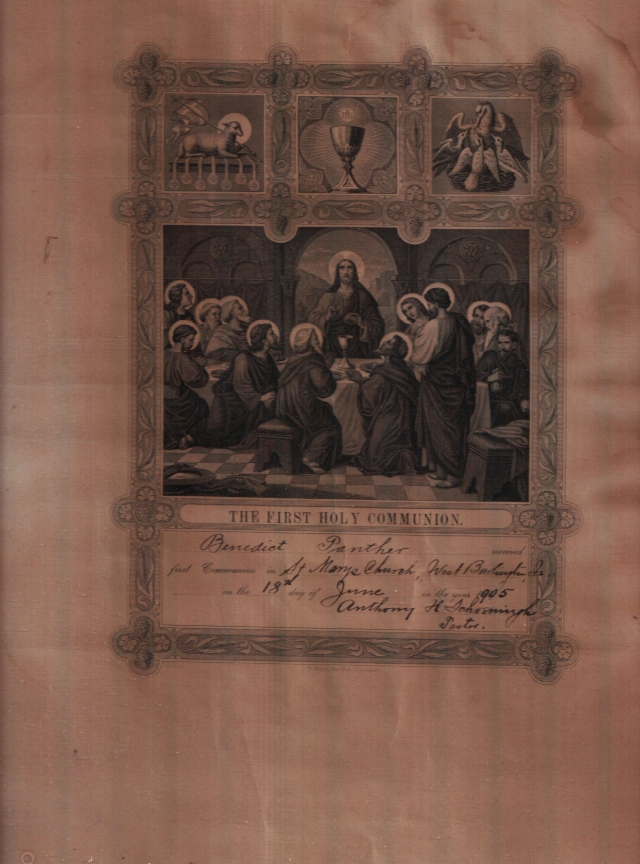 | Aloysius and Elizabeth Panther and Children F: Veronica, Mary, Anna M: George, Alvin Edward (Middle), Joseph, Elizabeth B: Leonard, Benedict, Frank, Aloysius, Morris |