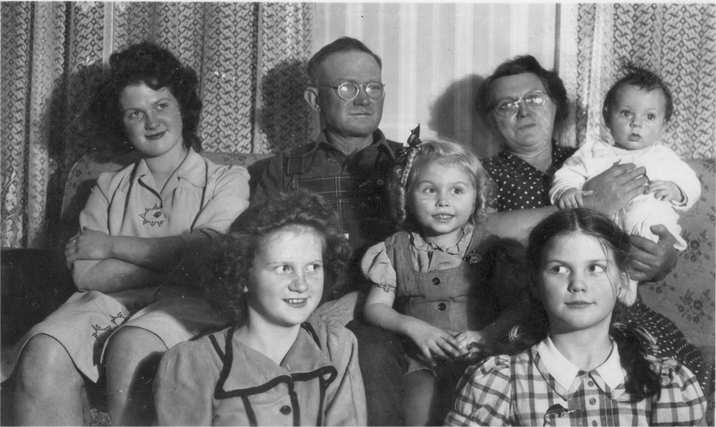 | Benedict and Elizabeth Panther, daughters and grandson, c. 1945 F: Agnes, Carol, Martha B: Rita, Ben, Elizabeth, Kenny |