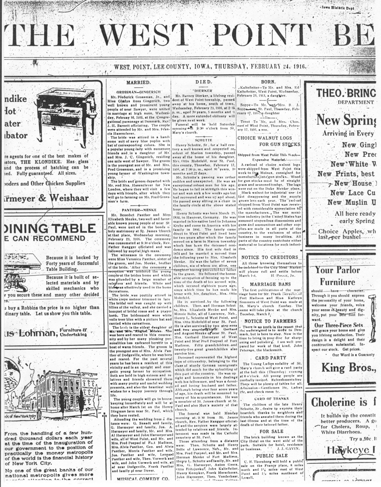 | Wedding Announcement The wedding announcement as it appeared in the West Point Bee. |