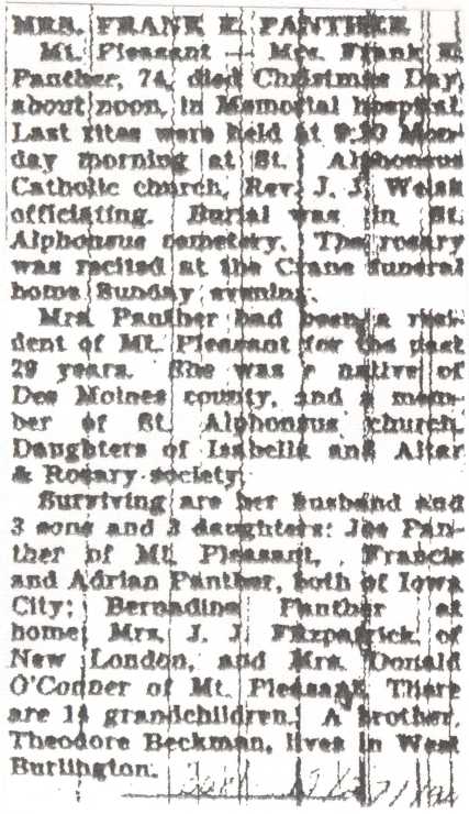 | Frances Beckman Panther In front of her Mt. Pleasant home. |