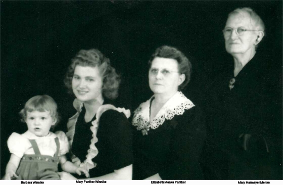 | Four Generations of Mothers & Daughters Barbara Winnike, Barabra's mother Mary Panther Winnike, Mary's mother Elizabeth Menke Panther, Elizabeth's mother Mary Harmeyer Menke |
